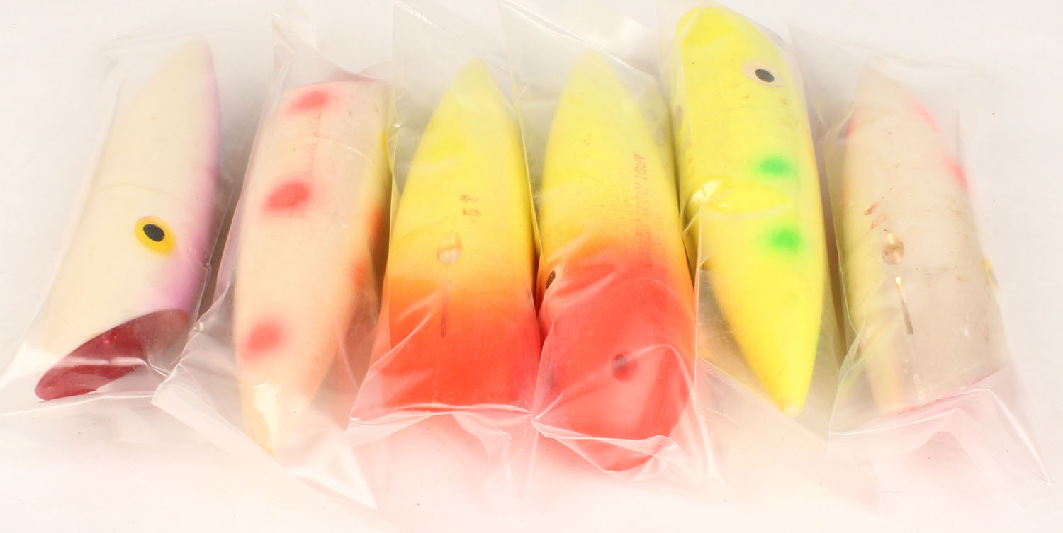 Lot of 6 salmon plugs. Grade: Excellent - Value: 4 to 60