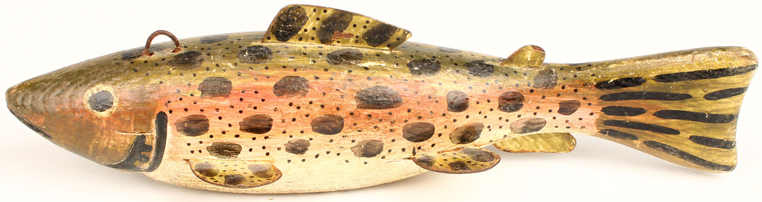 Unmarked Ice Fishing Decoy, PE, 1 line ties, has 7 metal fins, 7 1/2'' OAL. Grade: Excellent - Value: 4 to 60