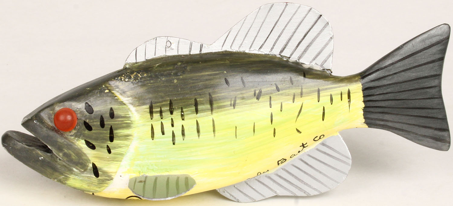 Grand Daddy Bait Co., Ice Fishing Decoy, Large Mouth Bass, PE, 1 line ties, has 7 metal fins, 7 1/2'' OAL. Grade: Excellent - Value: 10 to 60