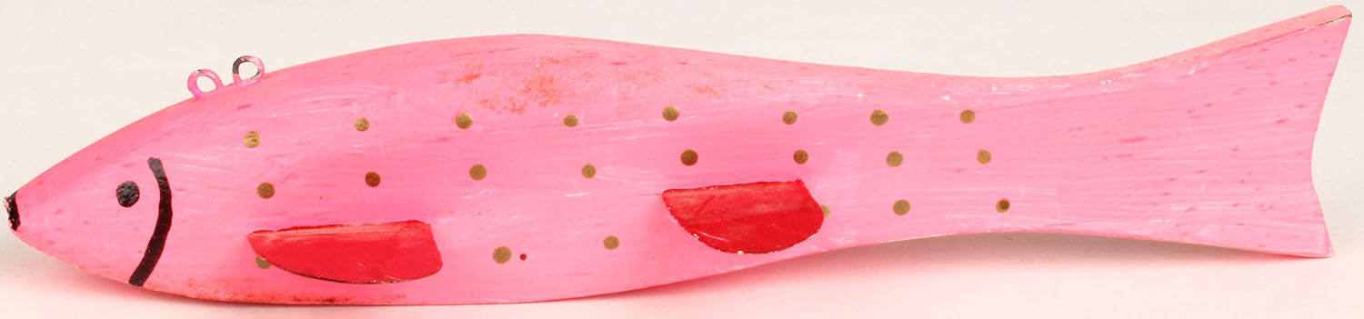 Unmarked Ice Fishing Decoy, PE, 2 line ties, has 4 metal fins, 7 1/2'' OAL. Grade: Excellent - Value: 10 to 40