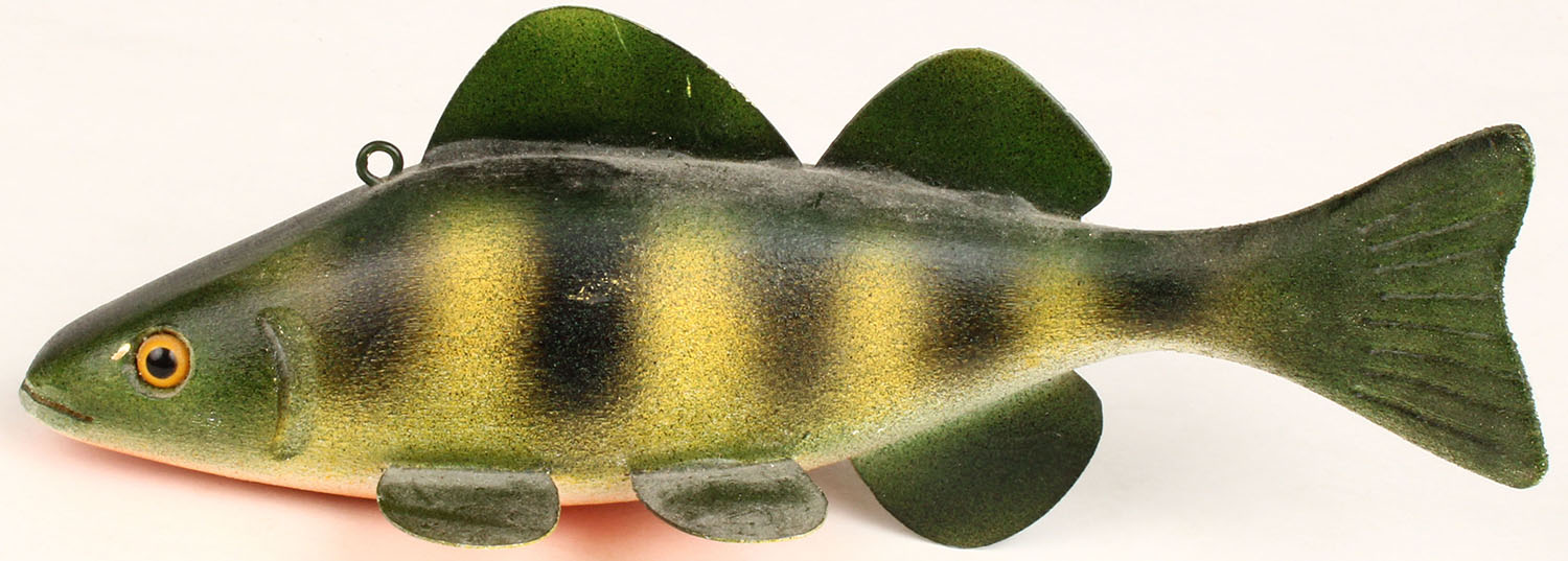 Unmarked Ice Fishing Decoy, GE, has 7 metal fins, 6 1/2 '' OAL. Grade: MINT - Value: 10 to 50