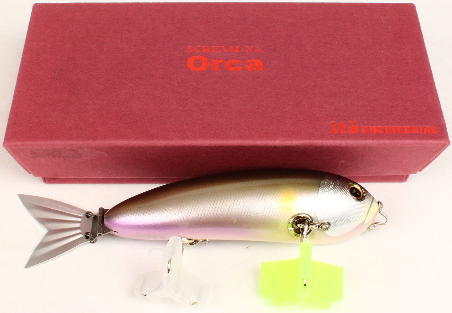 ITO, Scream-X Orca wood lure, CE, silver scale, has metal tail, original box. Grade: MINT - Value: 20 to 80