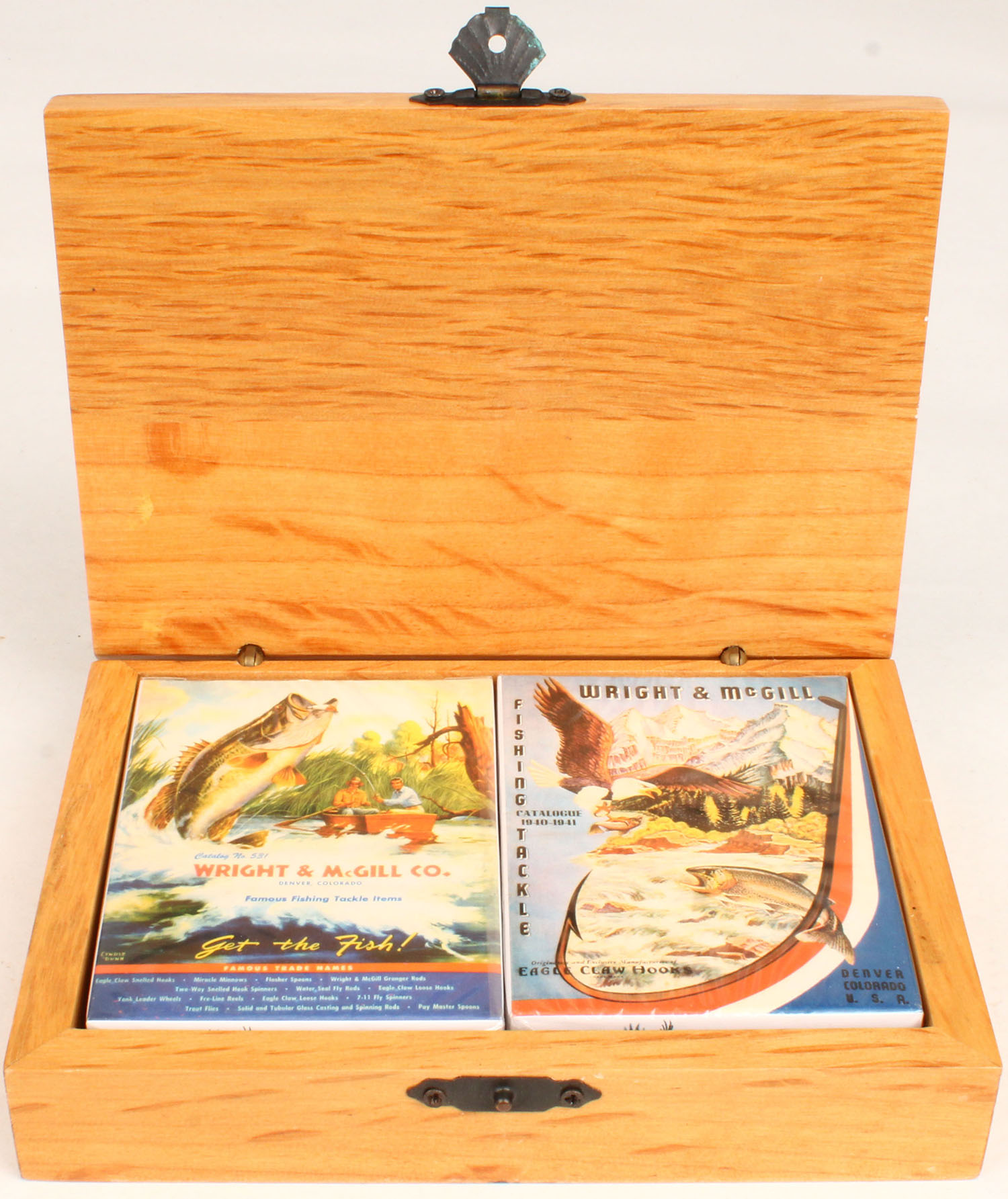 Lot of 2 Wright & McGill playing cards in wood box. Grade: MINT - Value: 10 to 50