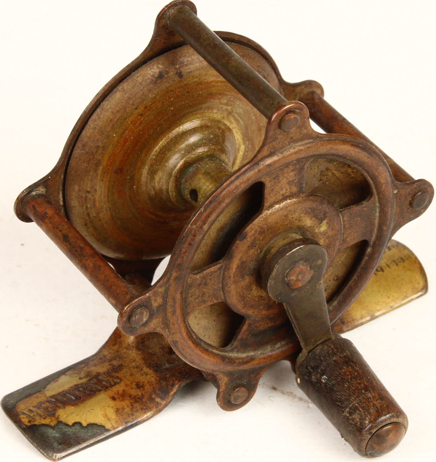 Hendryx small brass fly reel, single black wood handle, works well. Grade: Very Good - Value: 2 to 30