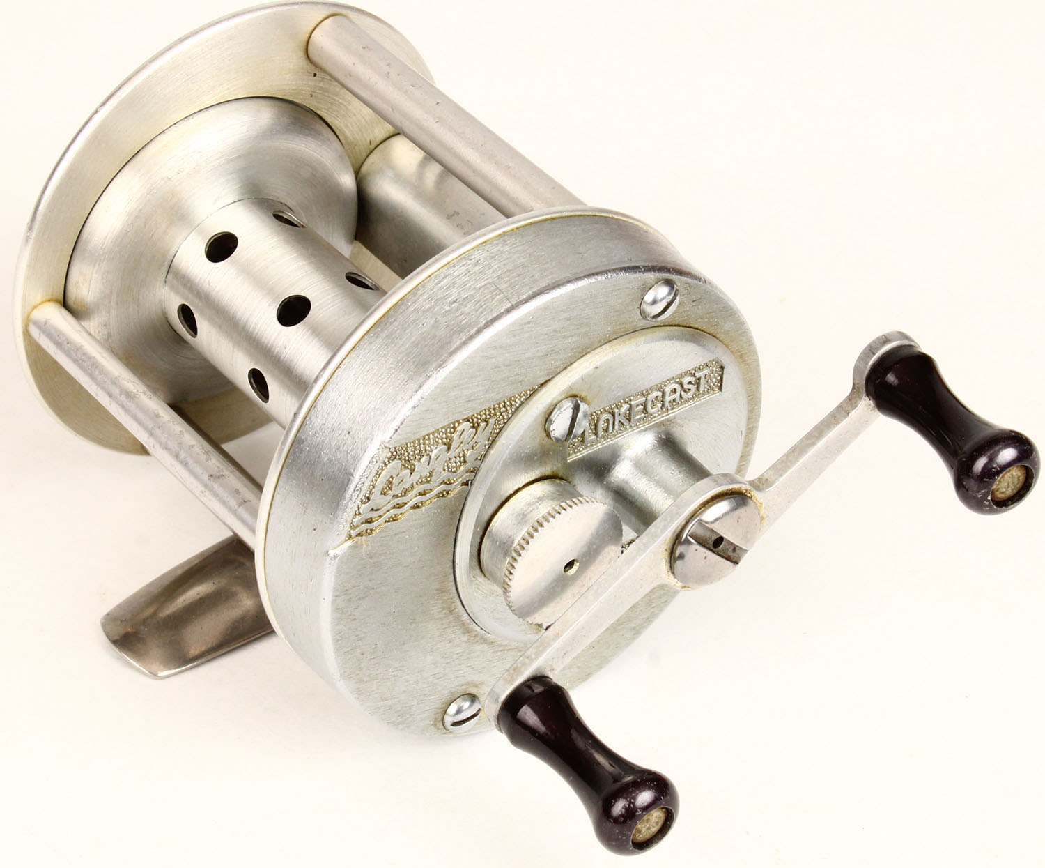 Langley Lakecast Reel, dual black handle, strong click. Grade: Excellent - Value: 2 to 20