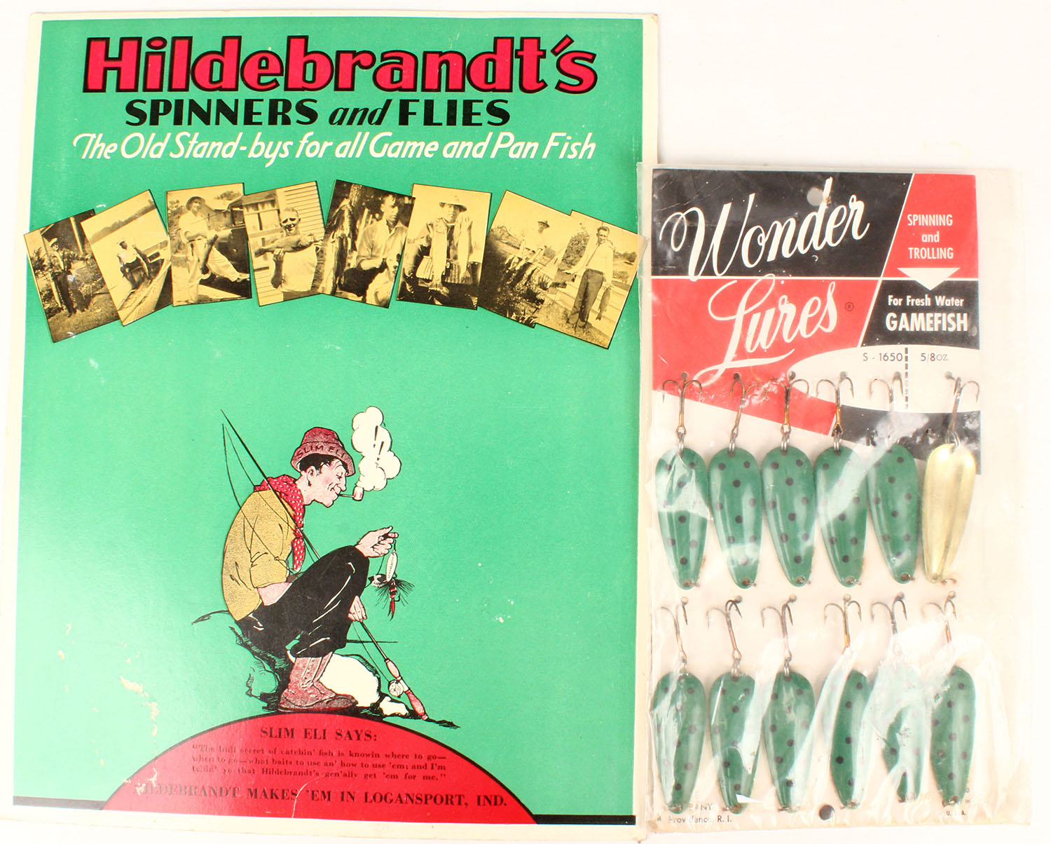 Lot of 2 fishing card board counter displays, one is full of spoons. Grade: Excellent - Value: 20 to 100