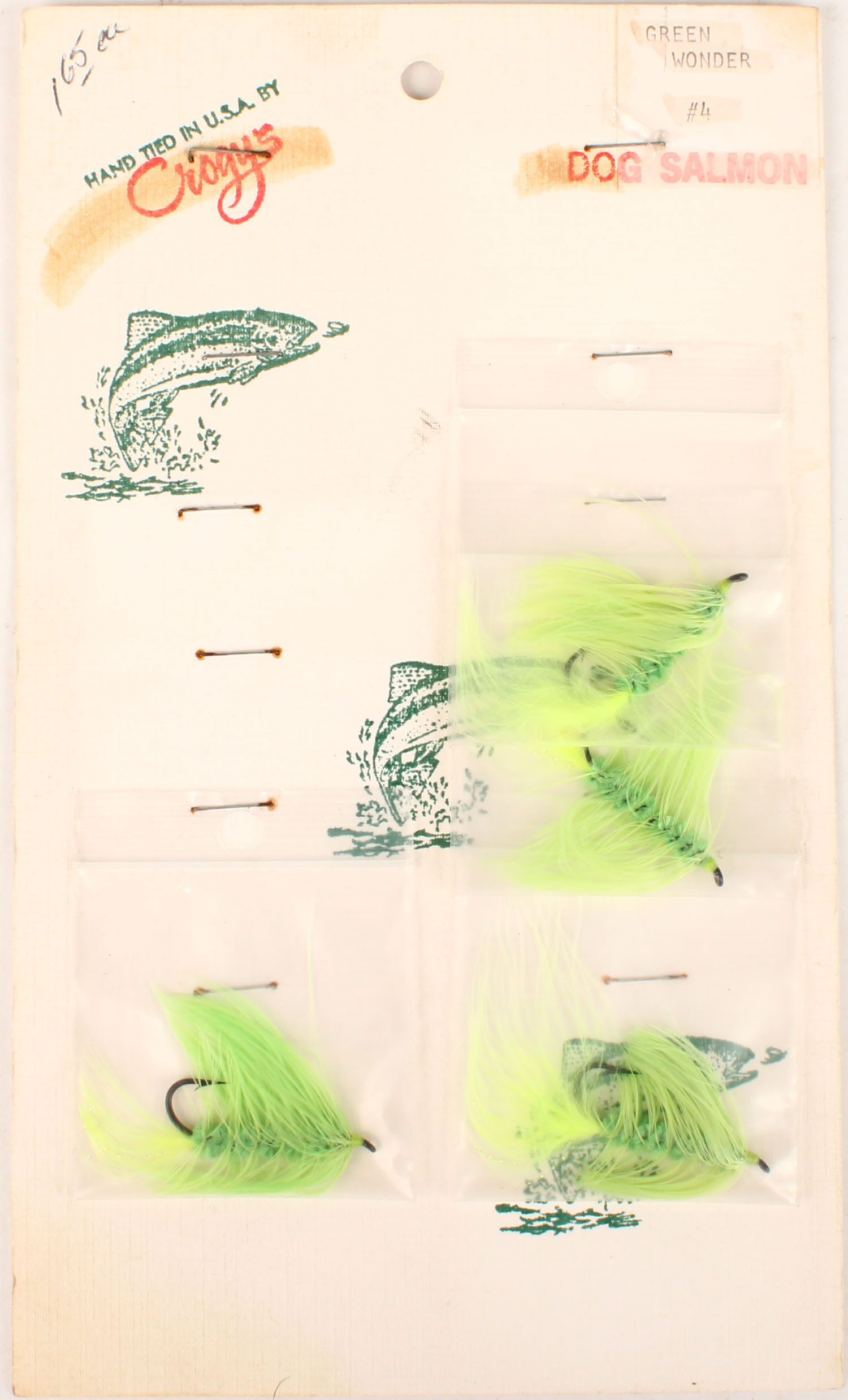 | Crogy's Dog Salmon flies on card, 5'' x 8 1/2''. Grade: MI...