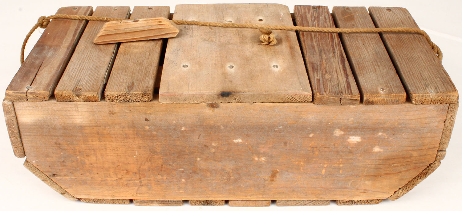 Early Wood Bait box for possibly lobster or crab??, 13'' long. Grade: Excellent - Value: 4 to 50