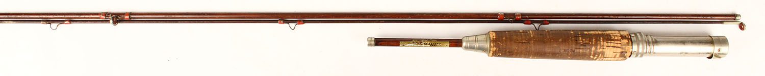 Winchester 3pc. Steel Fly rod No. 5715, 7', all orignal and correct length, wood handle is nice, well marked on reel seat ring, highly collectible. Grade: Very Good + - Value: 20 to 80