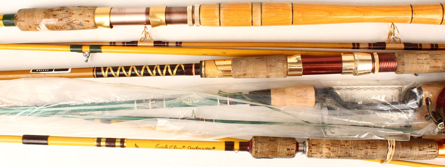 Lot of various fishing rods/ one reel. Grade: Very Good ++ - Value: 2 to 40