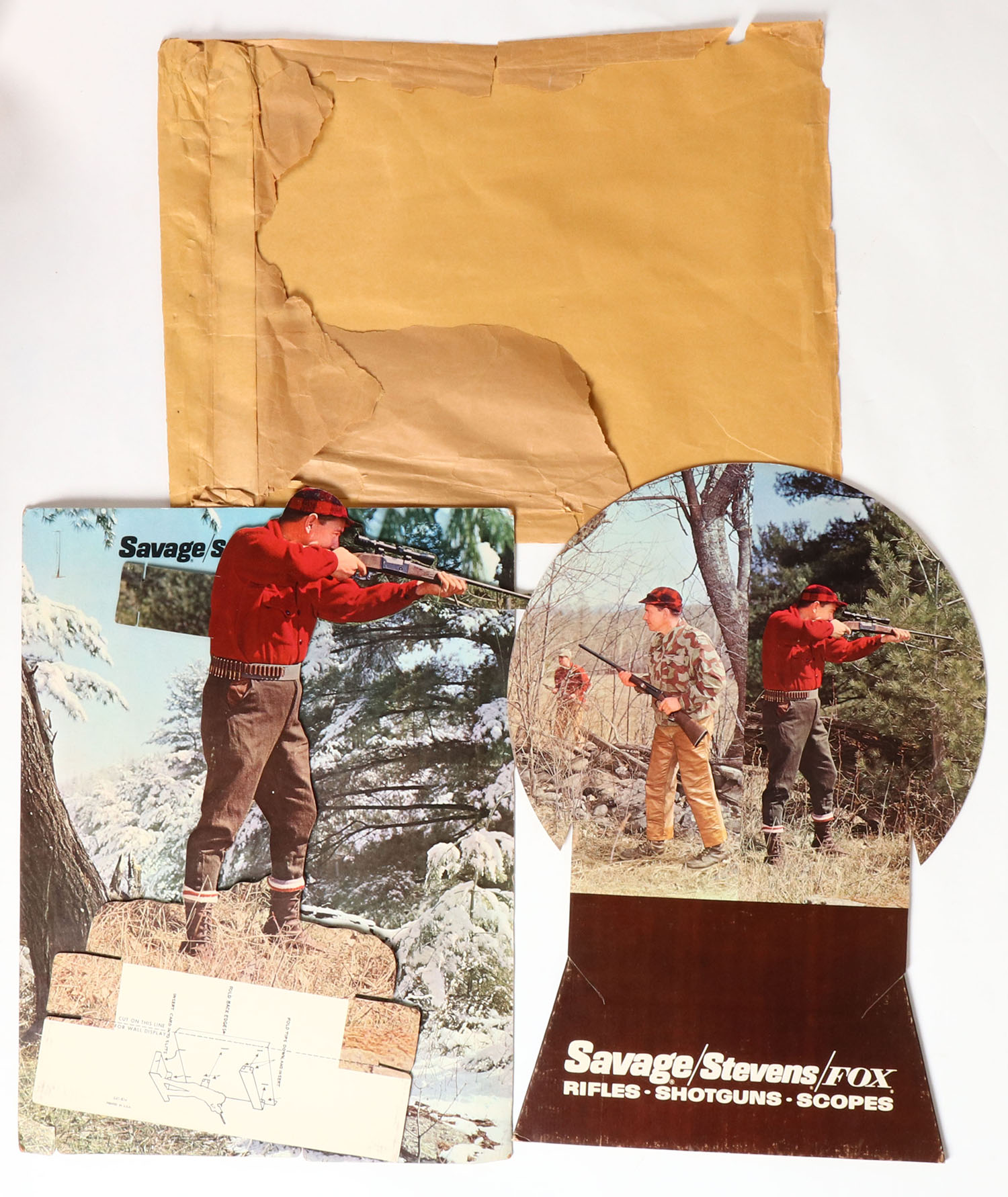 Lot of 2 Savage Stevens Diecuts, one pictures wo different fall hunting scenes, the other is 3D winter hunting scene, 16'' x 21''. Grade: Excellent ++ - Value: 40 to 250
