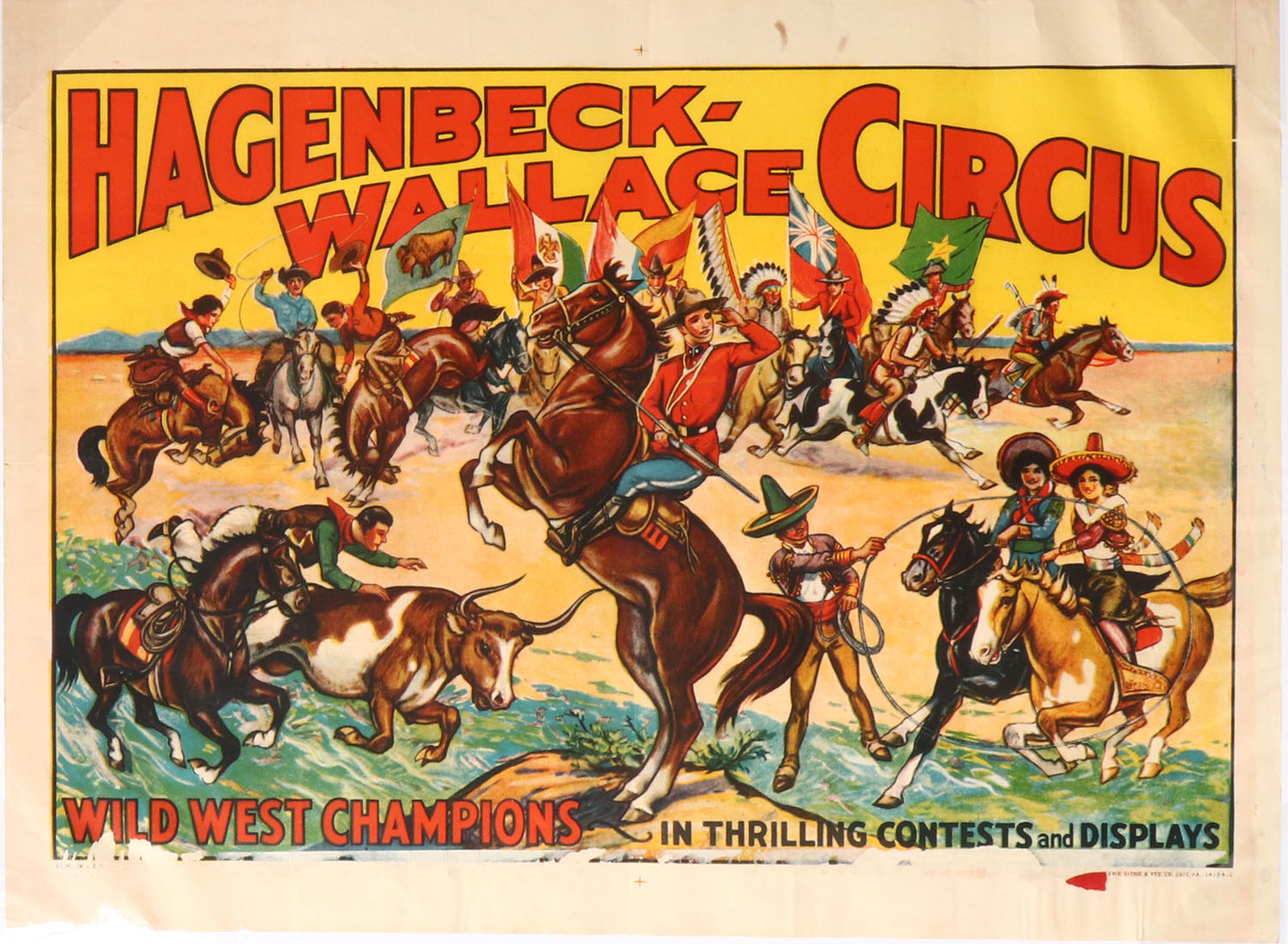 Hagenbeck-Wallace Circus Poster, Wild West Champions, full color image of the show, 26'' x 17 1/2'' image size. Grade: Excellent - Value: 50 to 250