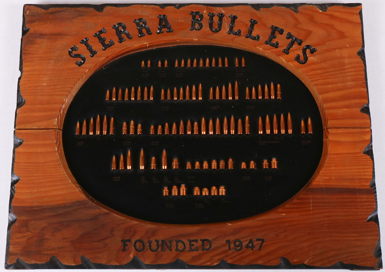 Sierra Bullet Board, Founded 1947, Early real wood outer wood base, All bullets intact. Grade: Excellent + - Value: 50 to 250
