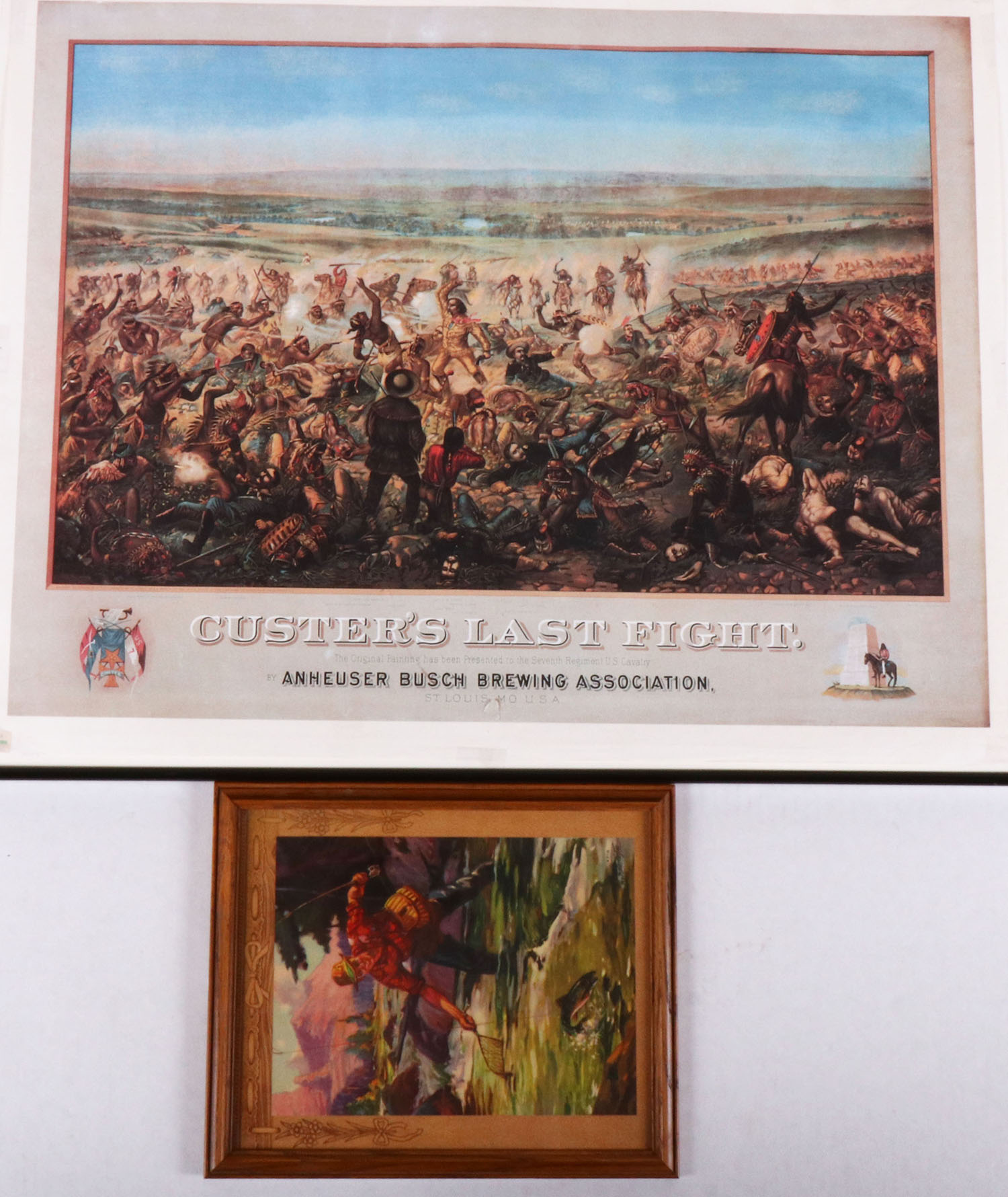 Lot of 2 prints, Fishing & Custer's Last Fight. Grade: Very Good ++ - Value: 10 to 50