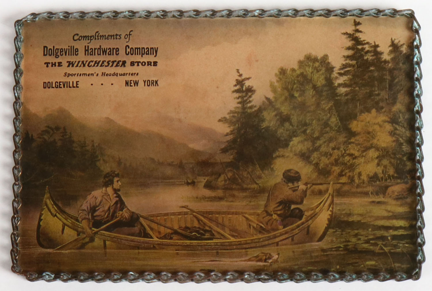 Winchester Chain Art, pictures deer hunting scene, 7'' x 5''. Grade: Excellent - Value: 30 to 100