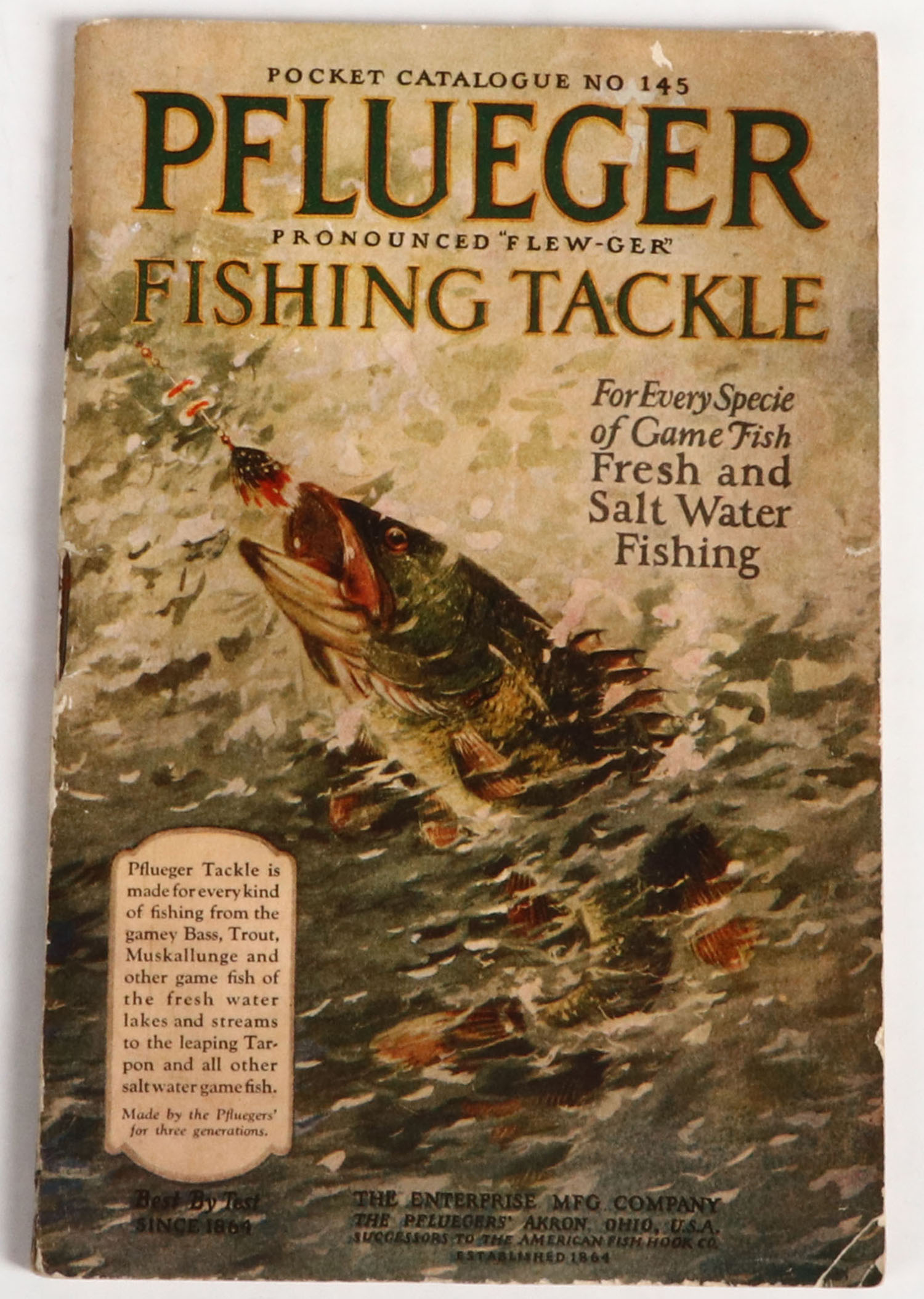 1926 Pflueger Fishing Tackle Full Line Catalog, No. 145, 133 pages, 5 1/4'' x 8'', has many full color pictures of lures, has factory letter still stapled inside. Grade: Very Good ++ - Value: 30 to 100