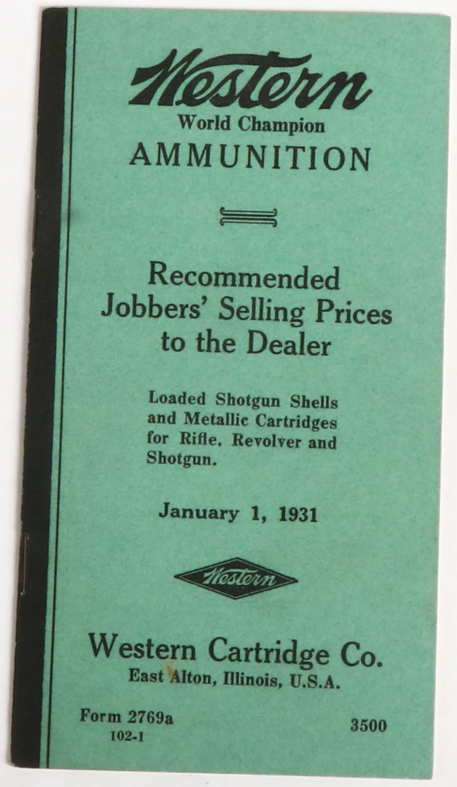 1931 Western Ammunition pocket catalog, Jobbers' Selling Price to the Dealers, 16 pages, 3 1/2'' x 6 1/4''. Grade: Excellent - Value: 2 to 50