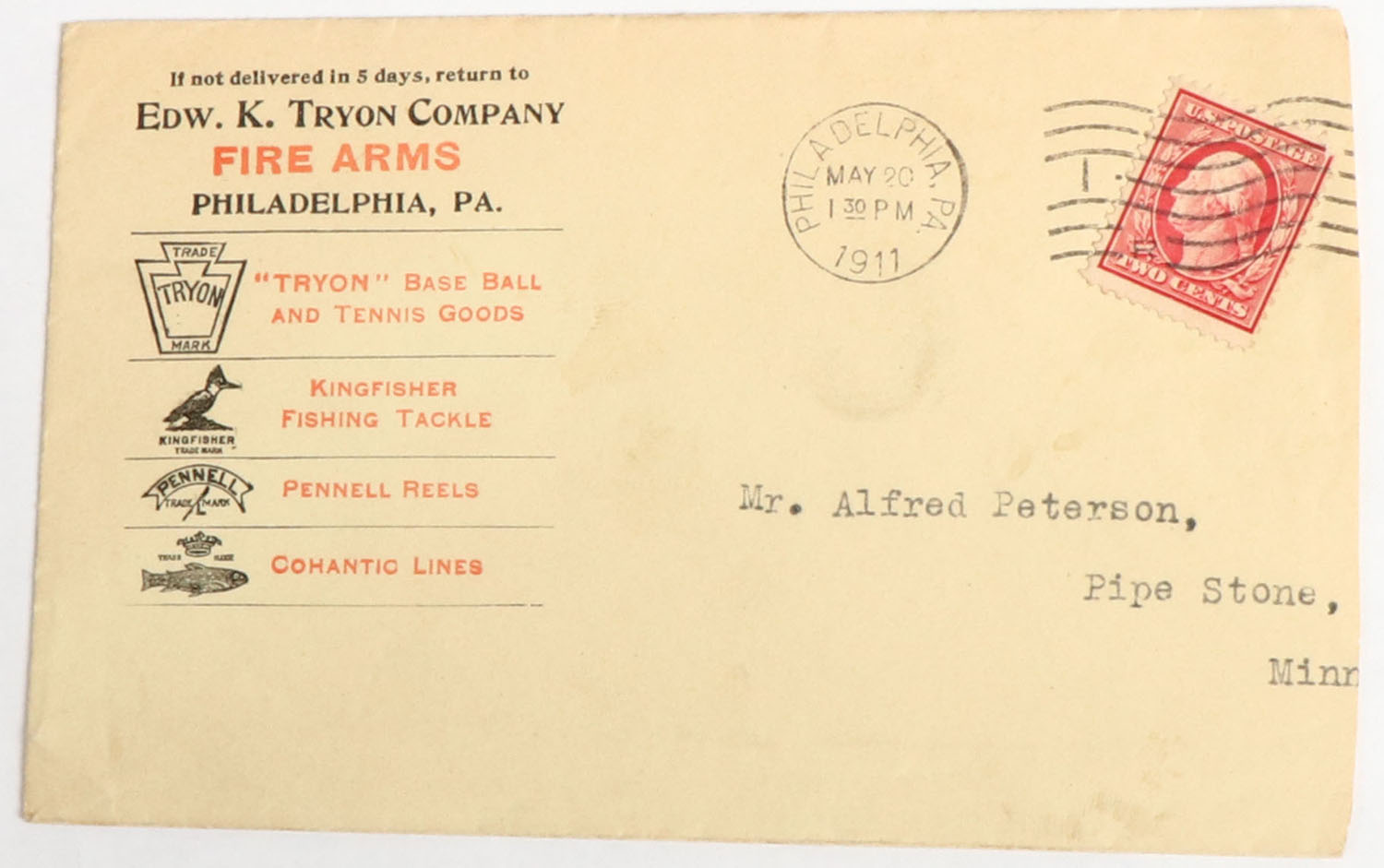 Edw. K. Tryon Co. Fire Arms Envelope, dated 1911. Grade: Excellent - Value: 2 to 30