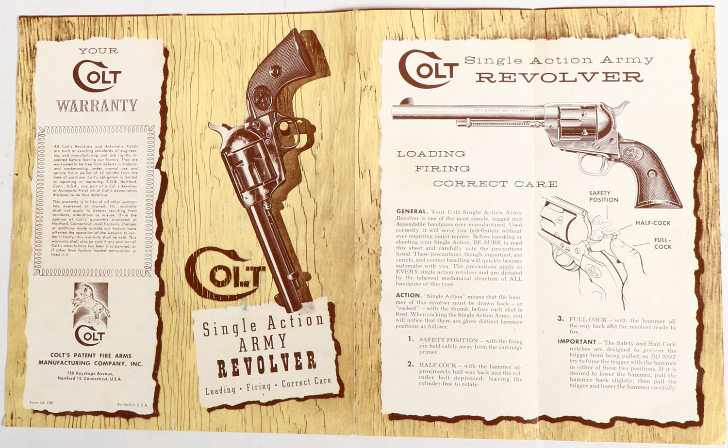 Colt SAA Revolver brochure. Grade: Excellent - Value: 10 to 60