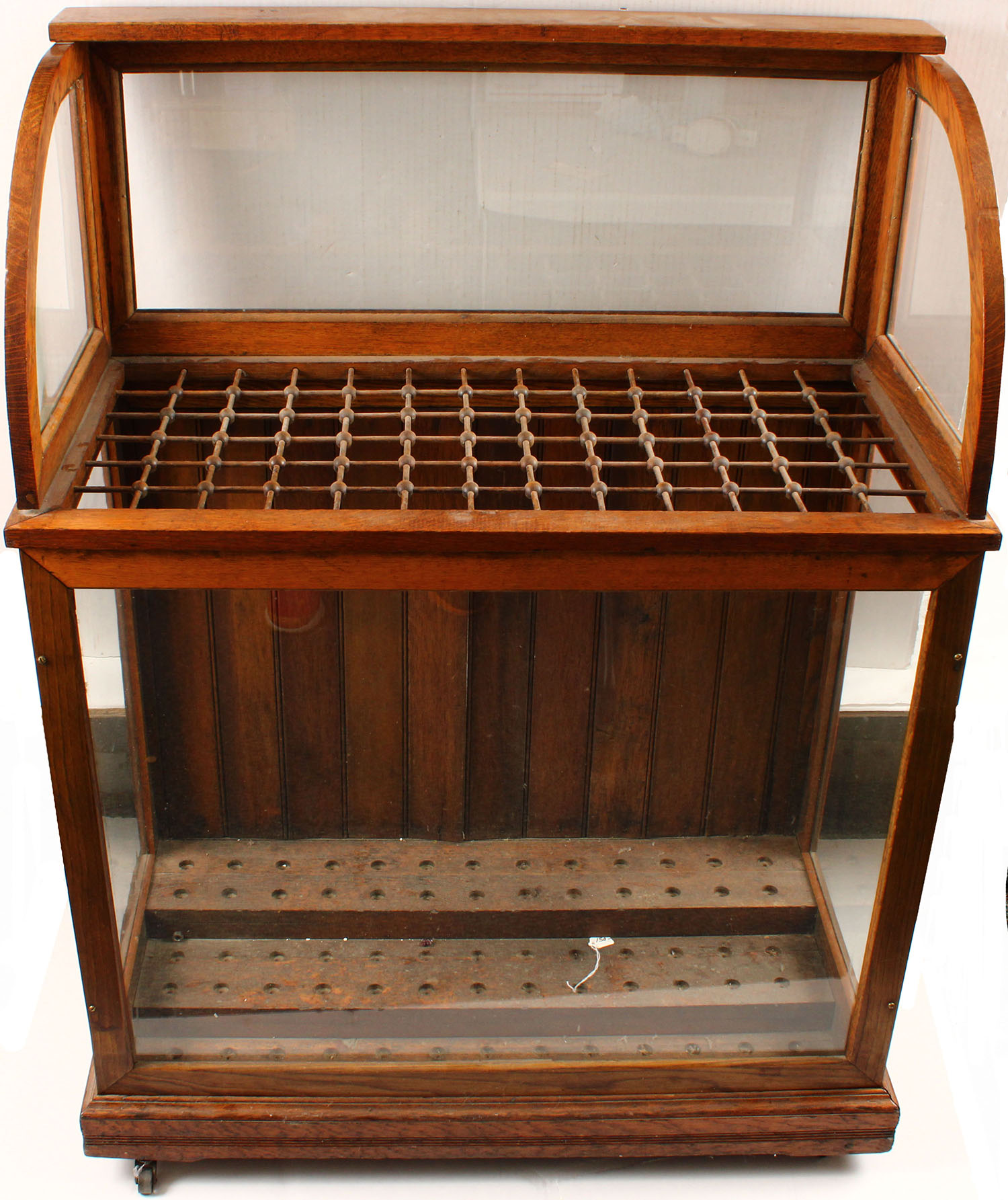 Rare Cane Wood Case, has wood spindles as dividers for each cane, glass front & sides, solid oak, very nice condition, 36'' x 48'' x 18'', Heavy, Shipping will be VERY expensive. Grade: Excellent - Value: 100 to 500