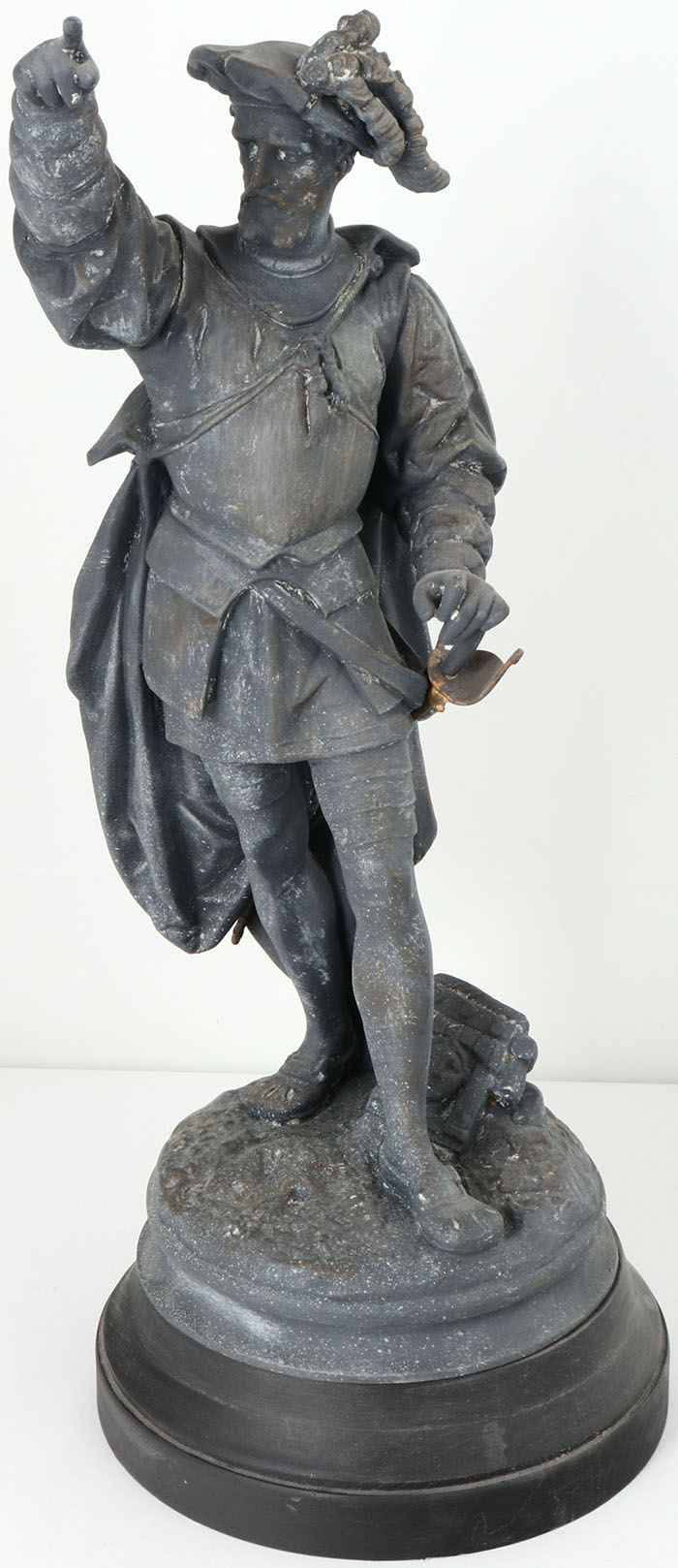 Medieval sculpture of warrior, hollow metal no name, 24'' x 7'' 7''. Grade: Excellent - Value: 10 to 500