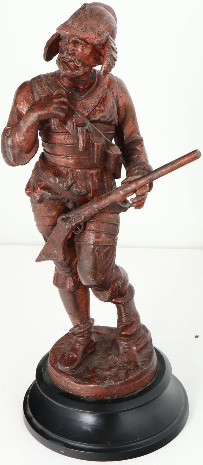 Mountain Man sculpture, hollow metal no name, 16'' x 7'' 7''. Grade: Excellent - Value: 10 to 500