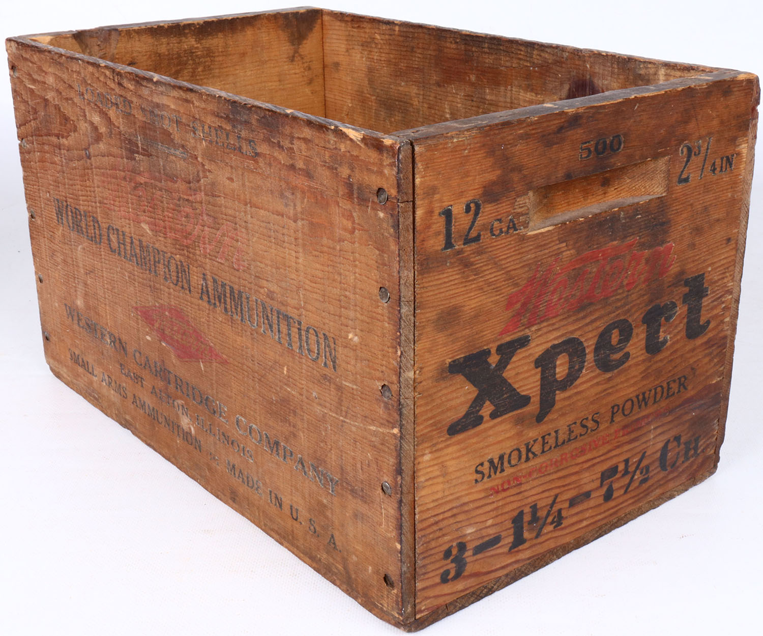 Western Xpert, 12 ga.., nail construction wood shipping crate, black & red print has minor fading, crate has age soiling, overall solid. Grade: Very Good ++ - Value: 10 to 50