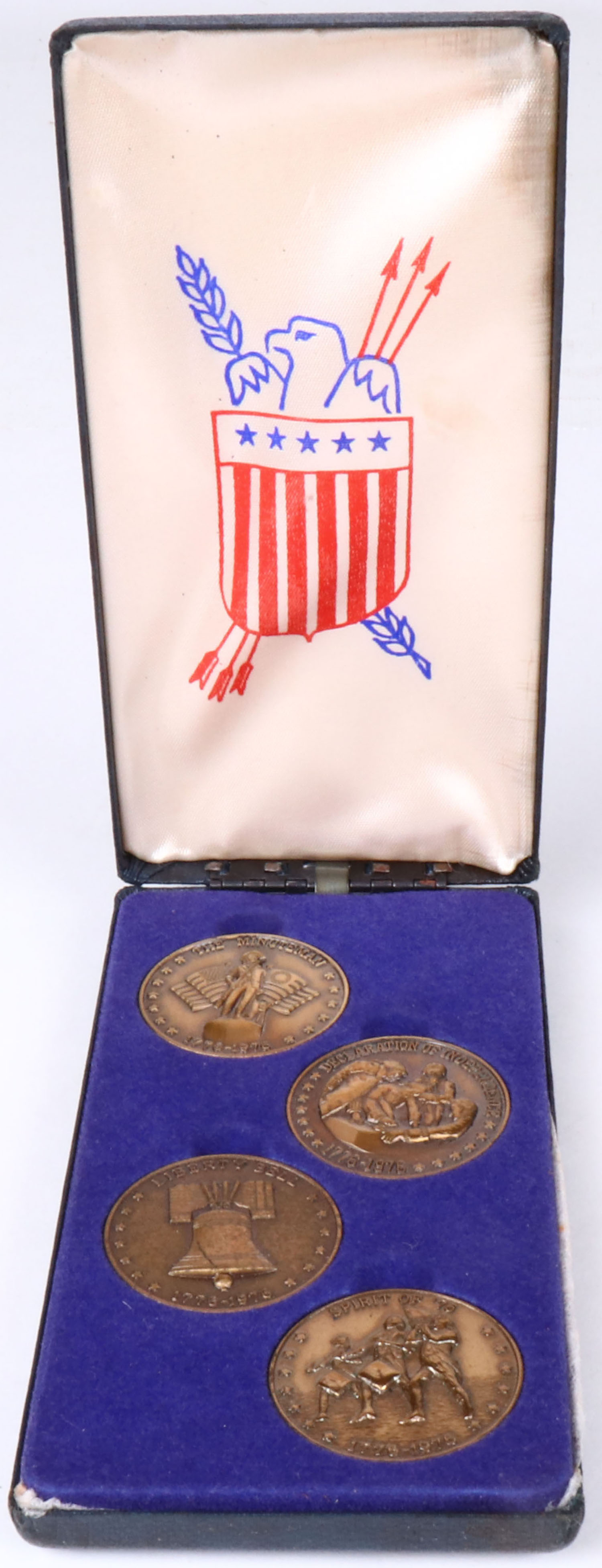 Boxed Set of Four Bicentennial 1776 - 1976 beautiful half dollar size coins. Uncirculated. Grade: Excellent ++ - Value: 20 to 120