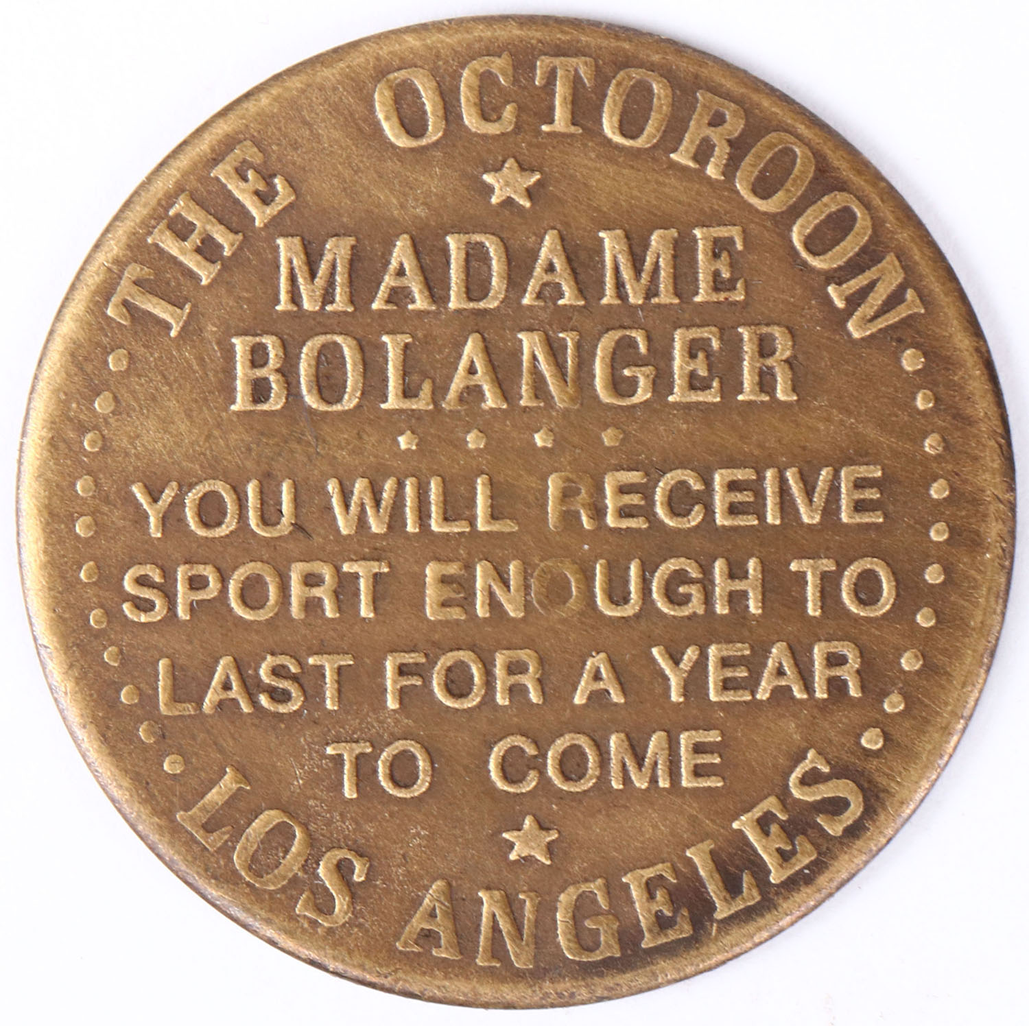 Double sided Brothel Token, Los Angeles, 1 1/2'' diameter. Grade: Excellent - Value: 20 to 100