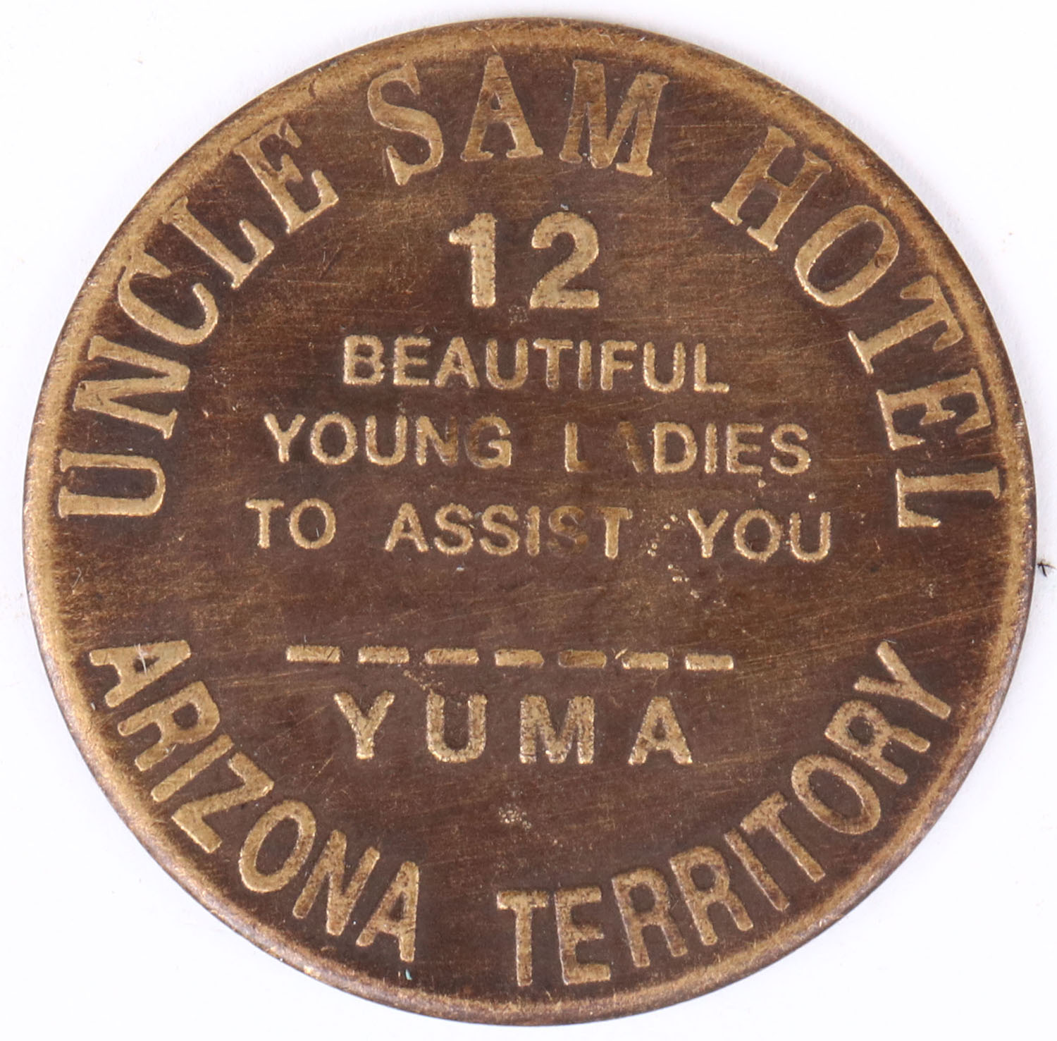 Double sided Brothel Token, Yuma AZ, 1 1/2'' diameter. Grade: Excellent + - Value: 40 to 100