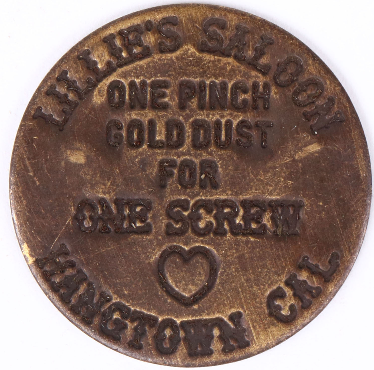Double sided Brothel Token, Hangtown Cal, 1 1/2'' diameter. Grade: Very Good ++ - Value: 40 to 100