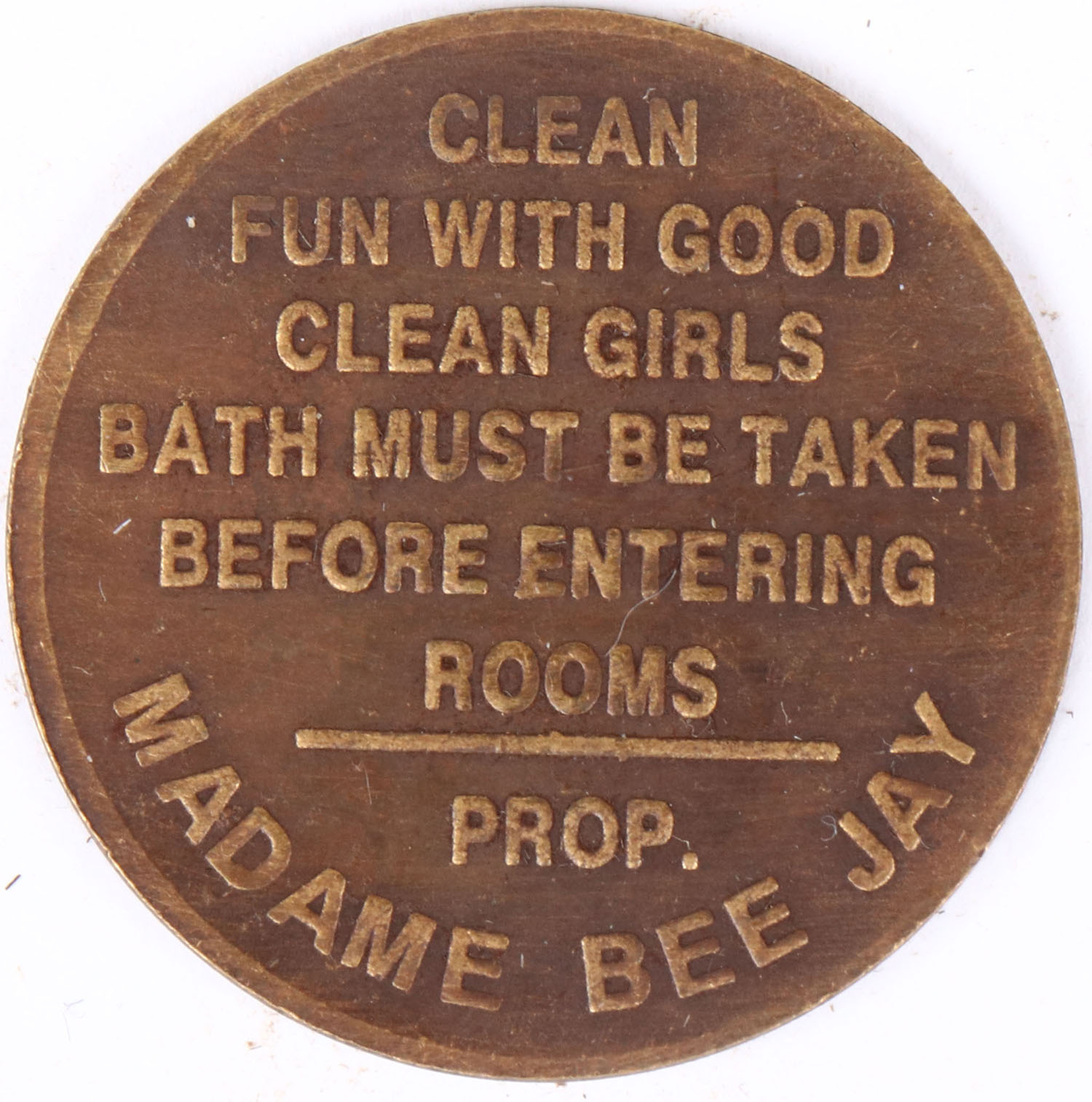 Double sided Brothel Token, Virginia City, 1 1/2'' diameter. Grade: Very Good ++ - Value: 40 to 100
