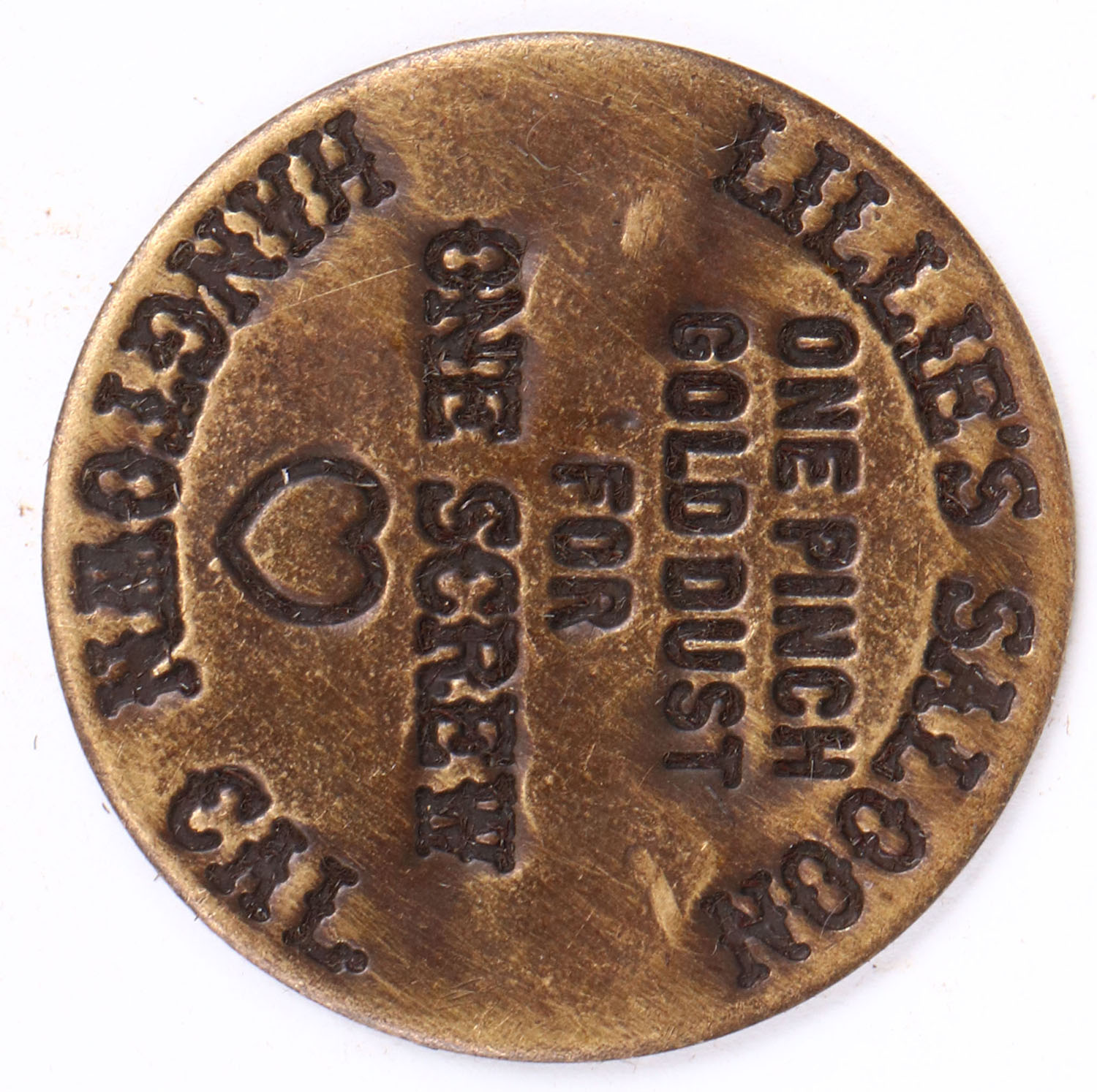 Double sided Brothel Token, Hangtown Cal, 1 1/2'' diameter. Grade: Very Good + - Value: 20 to 100