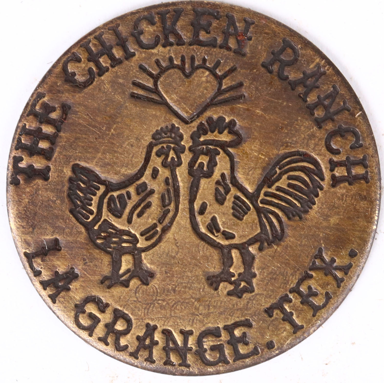 Double sided Brothel Token, La Grange, Tex, 1 1/2'' diameter. Grade: Very Good ++ - Value: 40 to 100