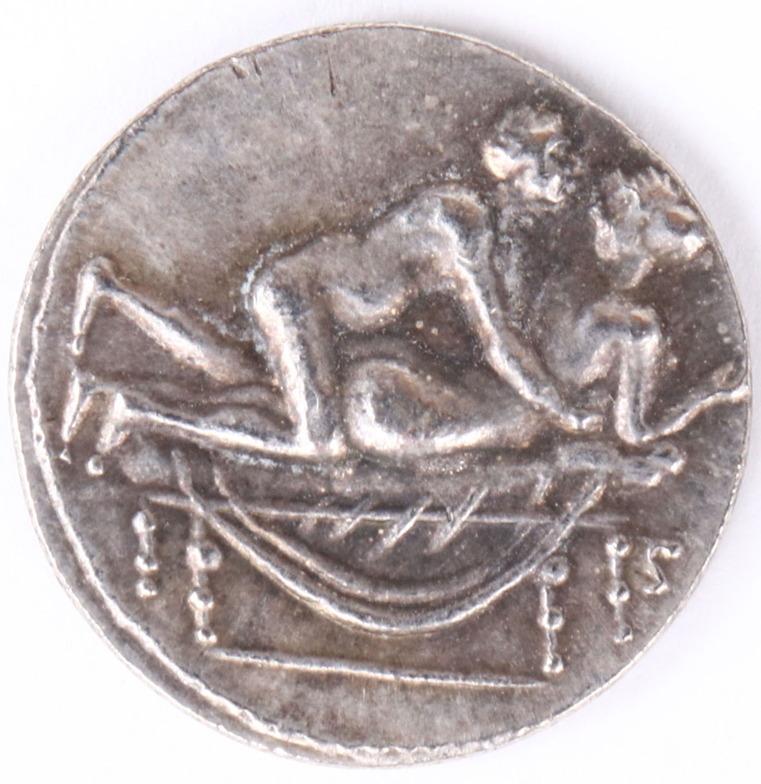 RARE Brothel token woman and man together nude on front of coin. Has wheat sheath and the Roman numeral 111 on back. About nickel size. Grade: Very Good ++ - Value: 60 to 350