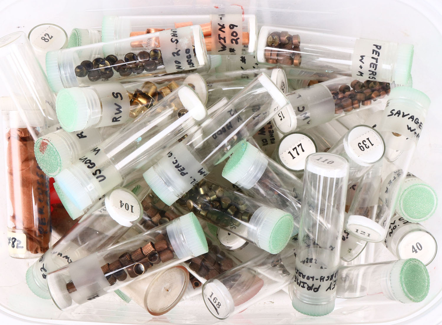Very large lot of various primers, marked individually in plastic containers. Grade: Very Good ++ - Value: 4 to 60