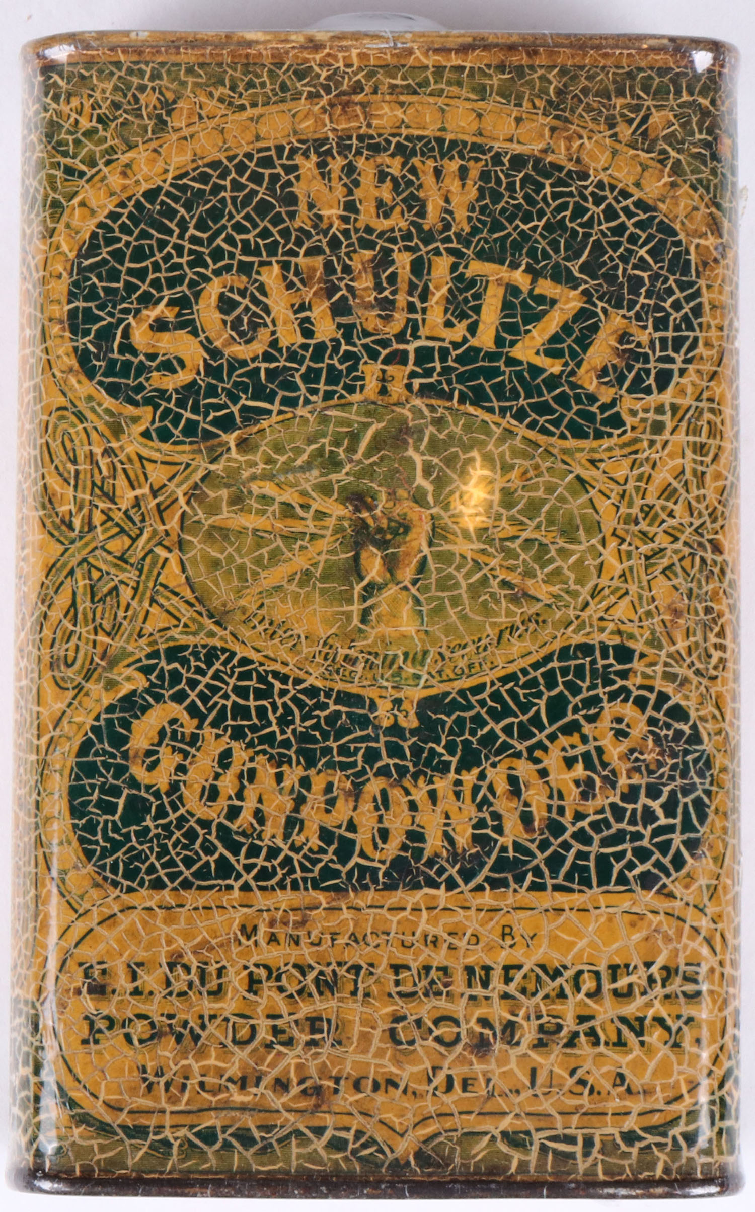 The DuPont New Schultz Gunpowder tin, empty. Grade: Very Good ++ - Value: 2 to 60