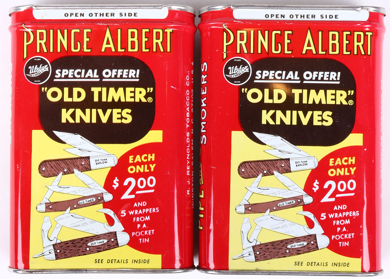 Lot of 2 Prince Albert Tobacco tin. Grade: Very Good ++ - Value: 2 to 40