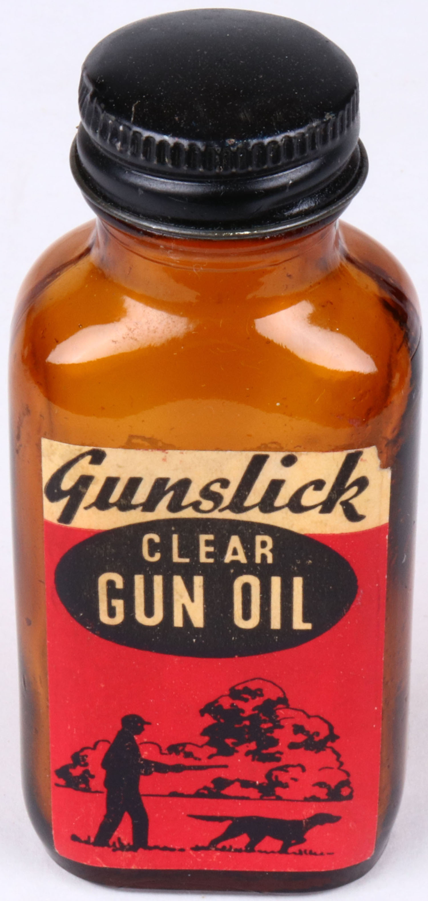 Gunslick gun oil glass jar, empty, nice label. Grade: Excellent - Value: 2 to 20