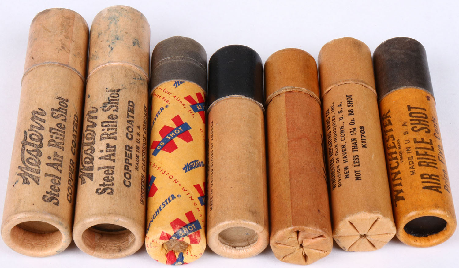Lot of 7 bb tubes, Winchester and Western, Western are both empty other appear Full. Grade: Very Good ++ - Value: 6 to 60