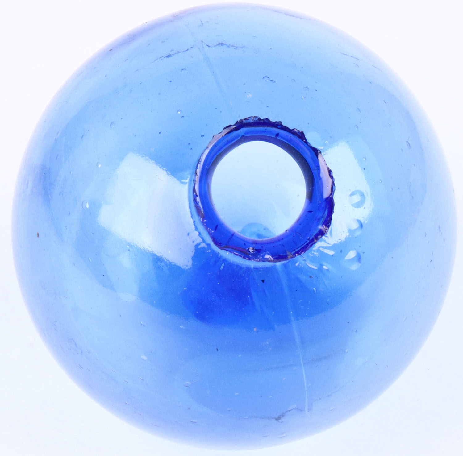 RARE! Light/Medium blue Glass Target Ball, 3 piece mold, 2 5/8'' dia., low neck, circa 1880-1900. Grade: Excellent ++ - Value: 200 to 600