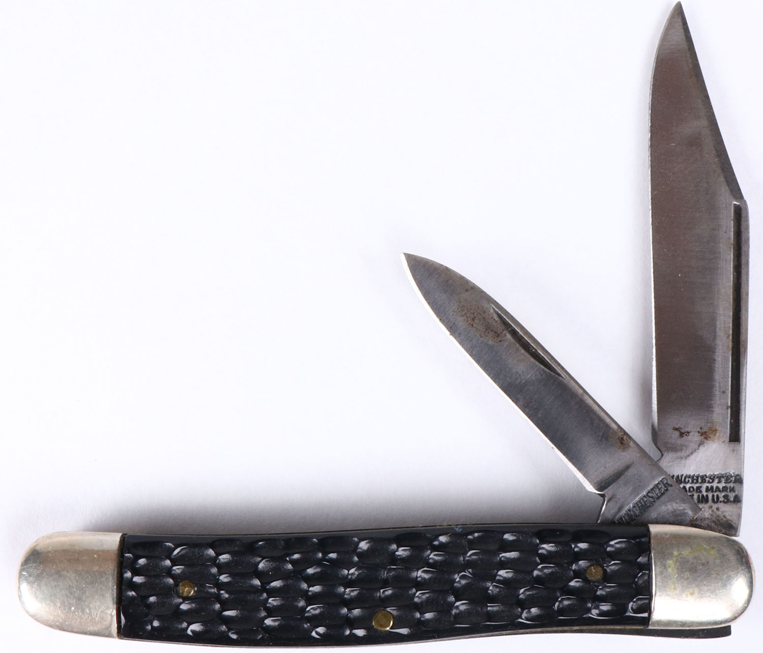 Winchester folding knife, 2 blades, 2 1/2'' longest blade, blade and handles are solid. Grade: Excellent - Value: 10 to 100