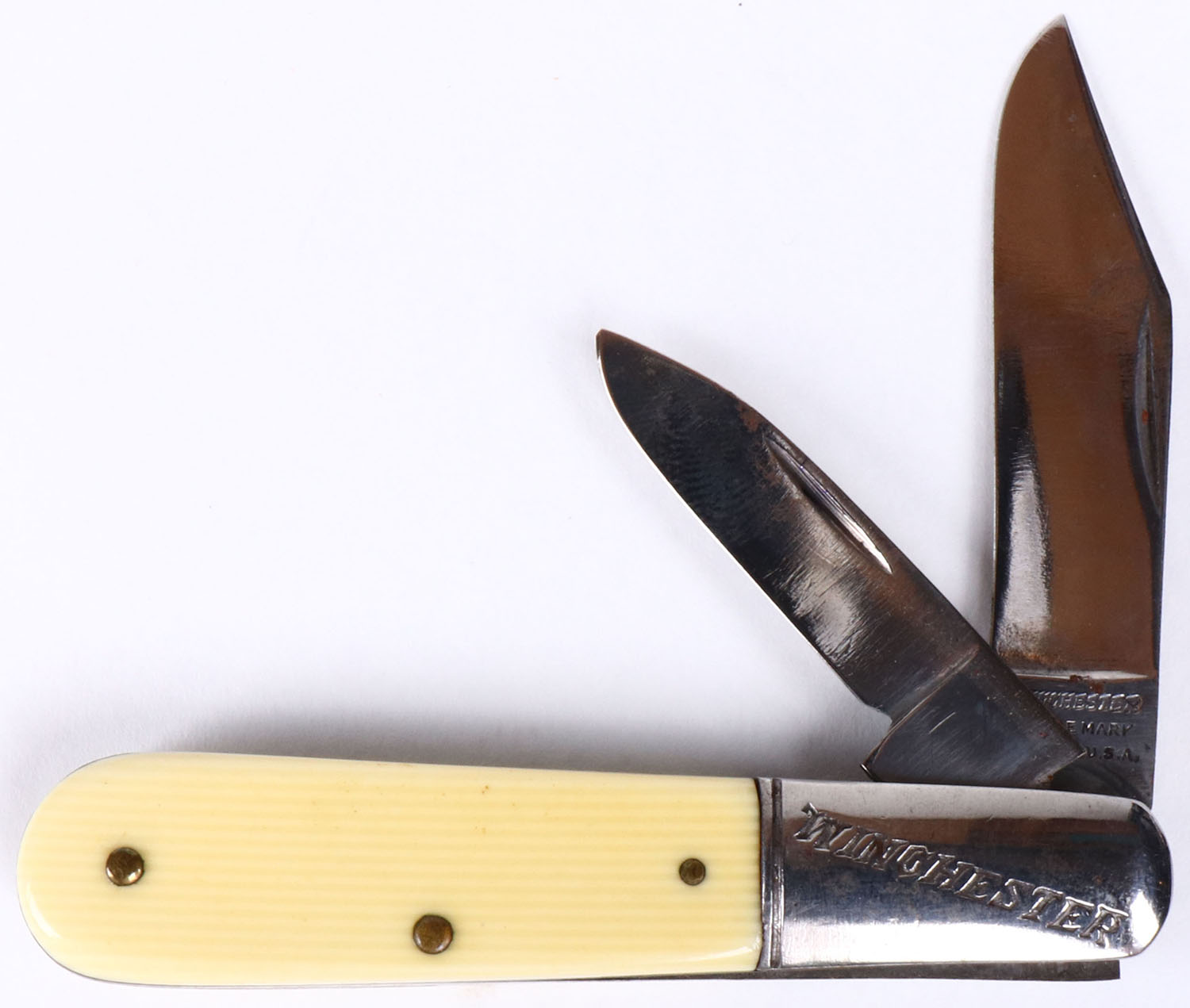 Winchester folding knife, 2 blades, 2 1/2'' longest blade, blade and handles are solid. Grade: Excellent - Value: 10 to 100