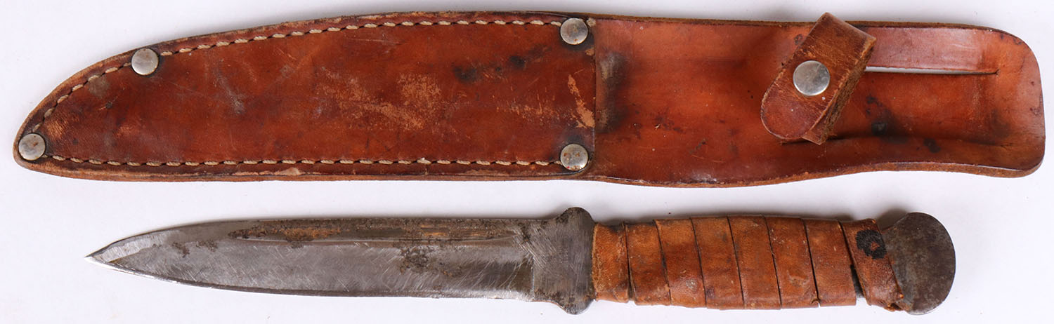 FA Bower fixed blade knife, in leather sheath. Grade: Very Good - Value: 4 to 40
