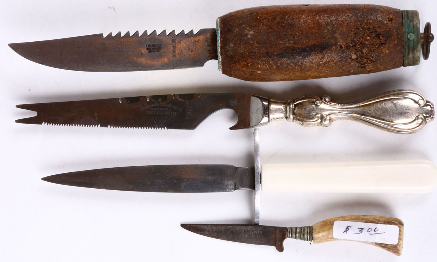 Lot of 3 fixed blade knives. Grade: Very Good ++ - Value: 6 to 60