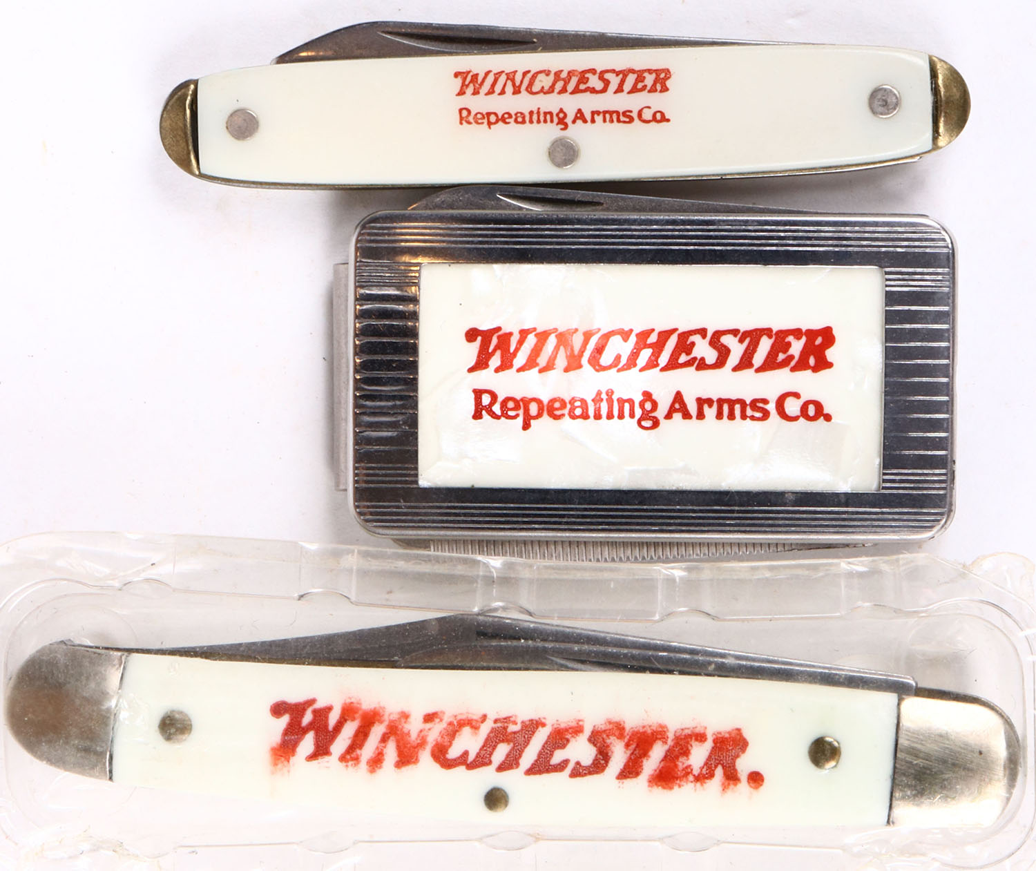 Lot of 3 Winchester folding knives, all bright and clean. Grade: Very Good - Value: 10 to 100