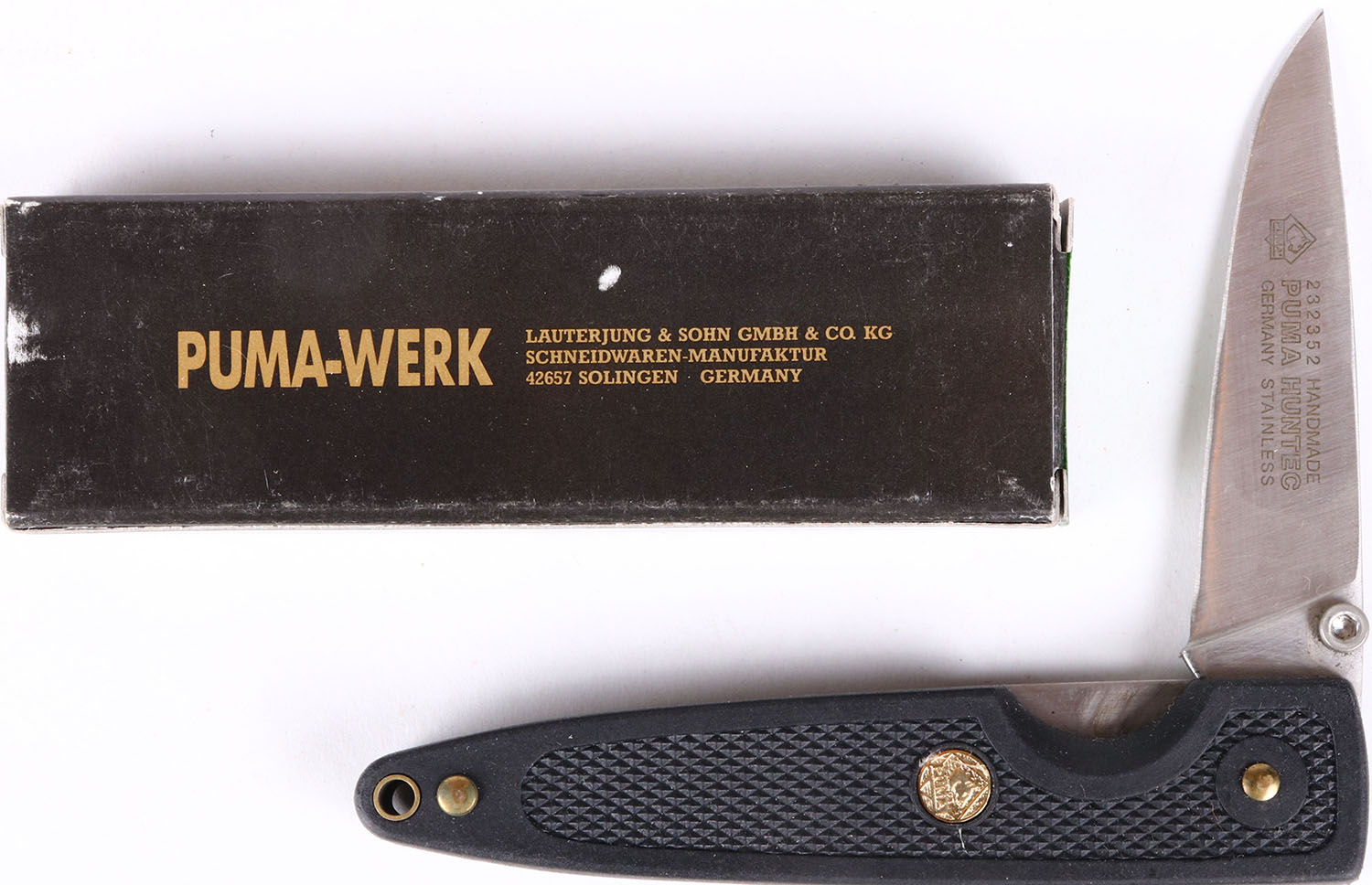 Puma folding knife, in orignal box, all bright and clean. Grade: MINT - Value: 10 to 100