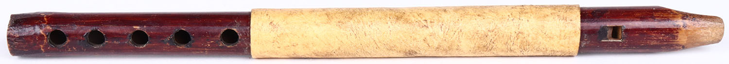 Late 19th century plains Indian courting flute. Made of cedar with a hide wrap. Grade: Excellent - Value: 40 to 280