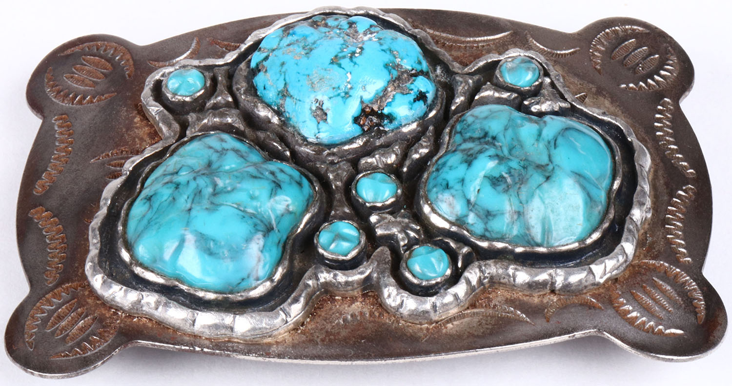 Turquoise vintage belt buckle. Grade: Excellent - Value: 20 to 100