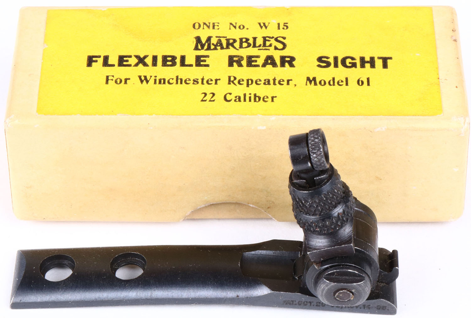 Marbles No. W15 sight for Win Mod 61 .22 cal rifle, in orignal box with screws & direction sheet. Grade: Excellent - Value: 150 to 350